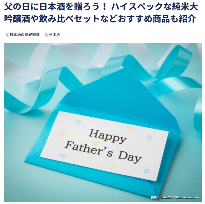 にて、父の日のプレゼントに編集部がおすすめする日本酒のひとつとして、弊社の看板商品「純米吟醸 浦霞禅」が紹介されました。